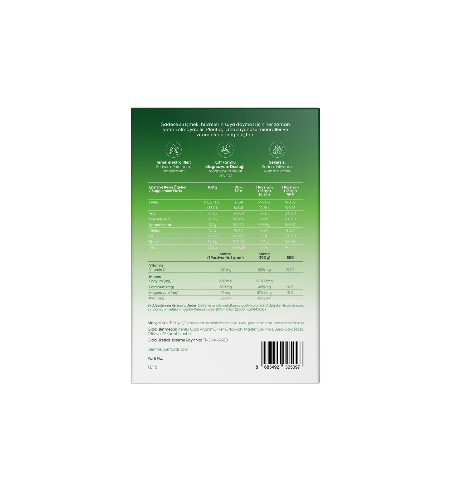 Plentia, içme suyunuzu vücudunuzun ihtiyaç duyduğu temel minerallerle zenginleştirir ve gün içinde kaybedilen elektrolitlerin yerine konmasına yardımcı olur.