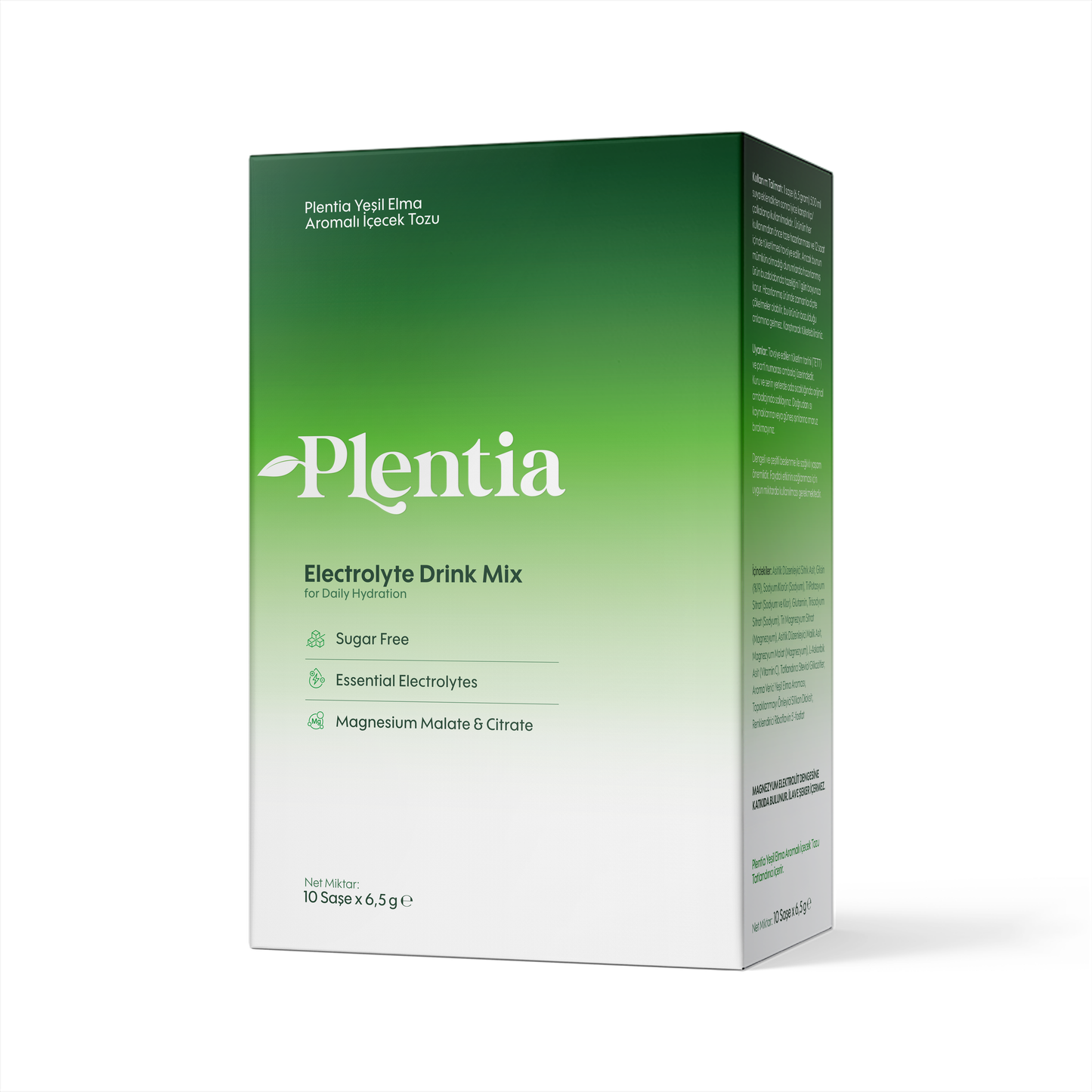 Plentia, vücudun sıvı dengesini desteklemek için temel mineraller ve destekleyici bileşenleri bir araya getirir. Sodyum ve potasyum, suyun hücrelere taşınmasına ve dengede tutulmasına yardımcı olurken; magnezyum kas ve sinir fonksiyonlarını destekler. Formüle eklenen aminoasitler hücresel yapı ve bağırsak dengesine katkı sağlar. C vitamini ise hücresel koruma ve bağışıklık desteği sunar.